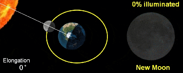 日、月、地相对位置和月相变化的关系,图自网络