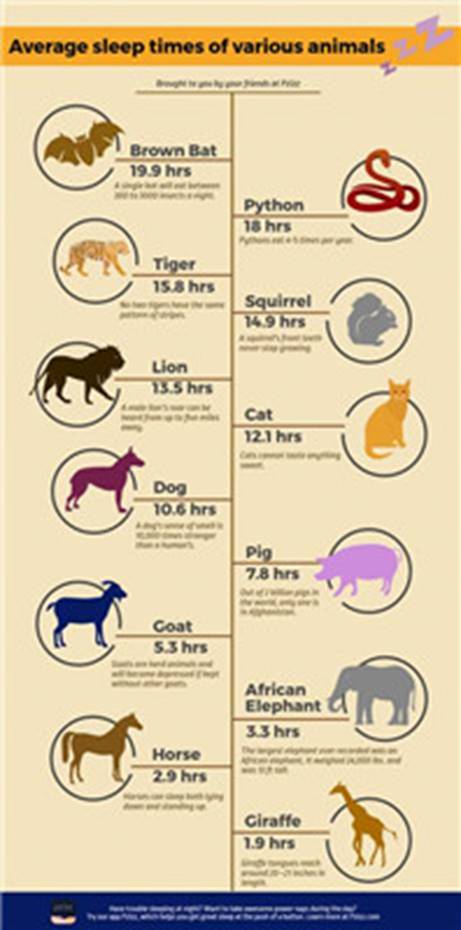 不同动物的睡眠时间,图源:Pzizz blog