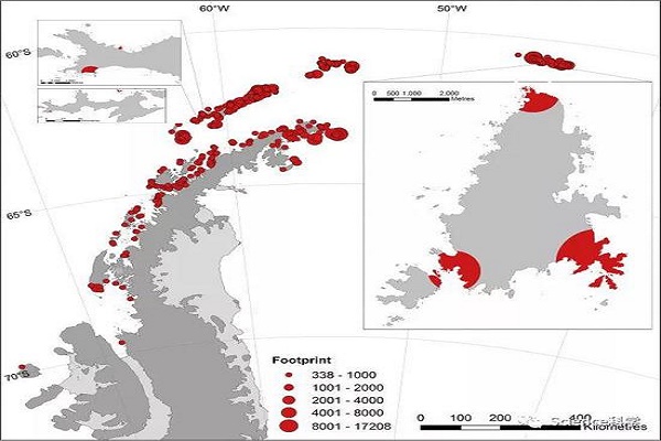 阿姆斯特丹自由大学的生态学家、该论文的第一作者Stef Bokhorst及其他科学家访问了南极半岛及其附近的地点,采集了苔藓、地衣和以这些植物为食的小动物的样本。他们发现,企鹅或海豹种群中动物的数量越多,它们的影响范围就越大。研究人员将这个区域称为氮足迹,并发现在某些情况下它比栖息地面积大240倍。