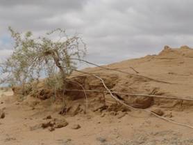 我们的根系特别发达,和柽柳一样也不怕被沙埋,生长的速度远远超过沙埋的速度。