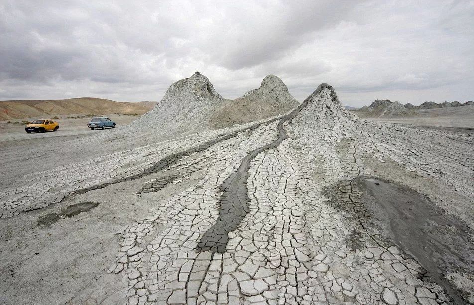 比如下面两座位于阿塞拜疆的泥火山,一座把自己炖成了一锅芝麻糊,另一座像在追求某种马赛克艺术美感。