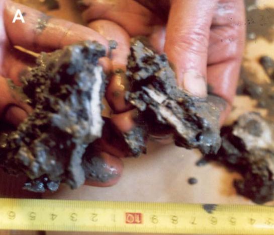 挪威海域Håkon Mosby 泥火山口的天然气水合物样品。图片来源:参考文献[7]