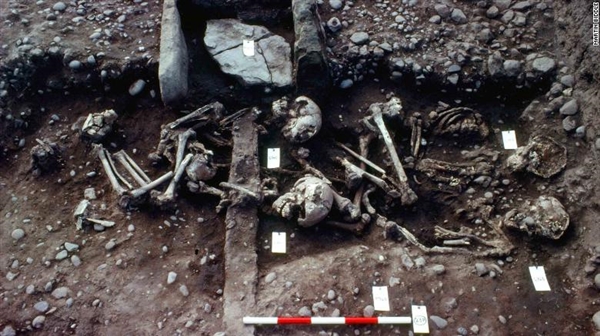 双人中的年长者生前曾遭重创,其左髋有极深的砍痕,深度直抵命根所在,令人怀疑小鸟和鸟蛋被一锅端——作为某种补救措施,死者双腿间摆放着一枚野猪獠牙。