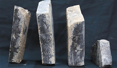 在现场除了大量板瓦、筒瓦、空心砖等建筑材料外,还有很多编磬残块。张杨力铮说:“大量编磬残块的出土令人振奋,尽管残碎严重,但不少有使用的痕迹,还发现了23件残块上有刻文,是秦小篆字的‘北宫乐府’等内容。”