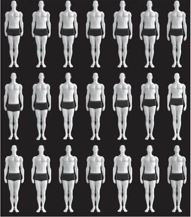 为了回答这个问题,研究人员从美国大约9000名男性中收集了平均身体比例,并用它们来创建男性模型图像(如图)。科学家们将模型的胳膊和腿部稍微拉长或缩短,然后要求800多名美国女性对每个模型的吸引力进行排名。