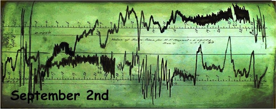 英国皇家协会记录下的“卡灵顿事件”中地磁场的强烈波动(图片来源: British Geological Survey)