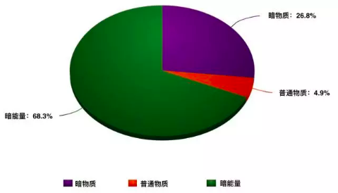 在1998年,有两个科研小组通过对遥远的超新星爆发的测量得出了一个结论:虽然预计这些超新星发出的光在到达地球的时候被拉伸,但意想不到的是,拉伸的程度比先前预测的要多。换句话说,宇宙不仅在膨胀,而且在加速膨胀!科学家把造成加速膨胀的幕后黑手称为“暗能量”。暗能量支配着宇宙的命运,占据了宇宙总质量和能量的68.3%。