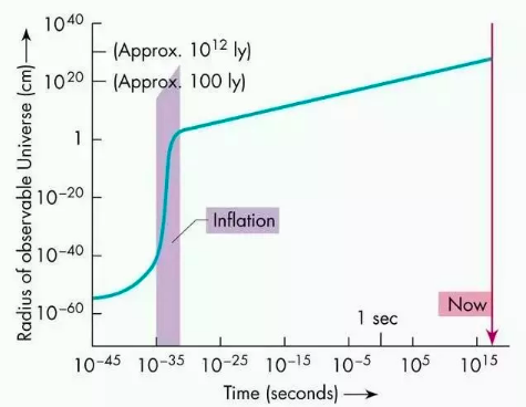 宇宙经历了一次指数式的暴胀(Inflation)
