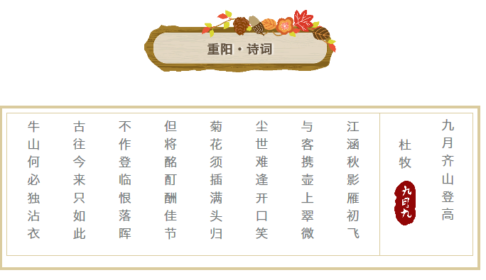 因 “九九”与“久久”同音,九在数字中又是最大数,有长久长寿的含意,所以古人认为,重阳节是个值得庆贺的吉利日子。