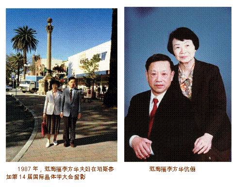 范海福、李方华同为中国科学院院士,共同致力于发展电子显微学理论与方法,不仅是生活上的伴侣,更是彼此事业的有力支持者。在工作上的敬业程度堪称典范,关心年轻人进步,培养了大量海内外杰出的电子显微学人才。
